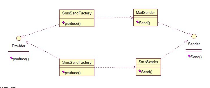 其实这个模式的好处就是,如果你现在想增加一个功能:发及时信息,则只需做一个实现类,实现Sender接口,同时做一个工厂类,实现Provider接口,就OK了,无需去改动现成的代码。这样做,拓展性较好!